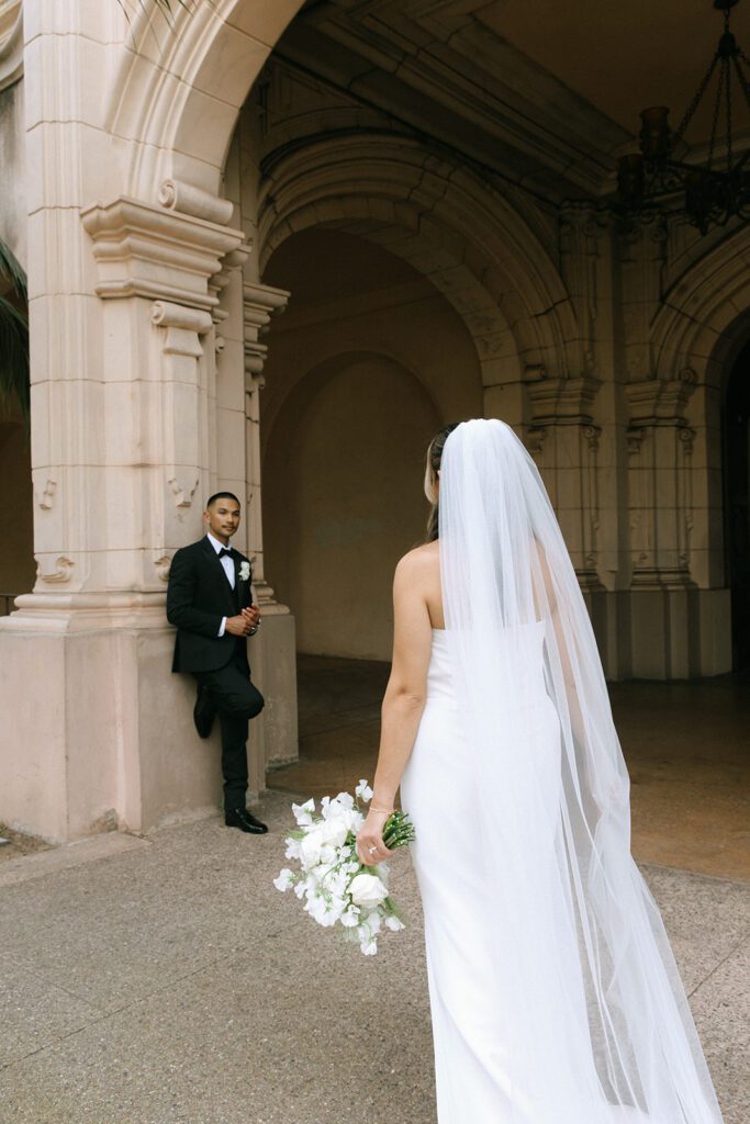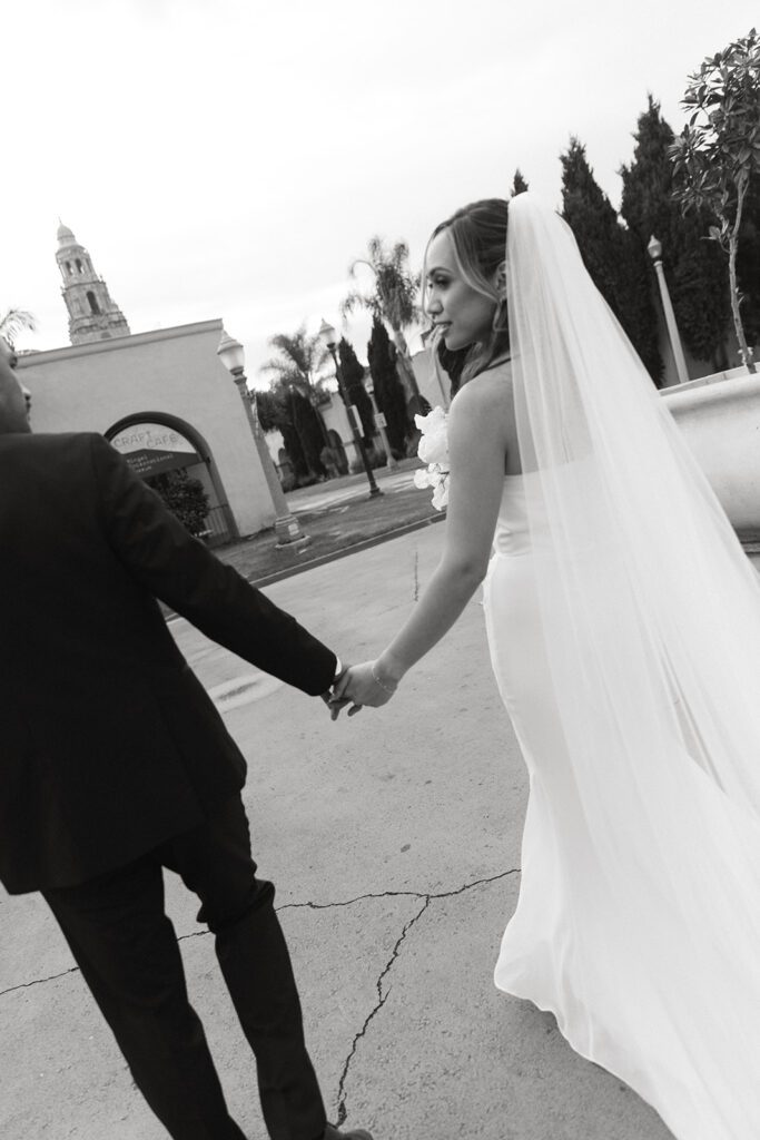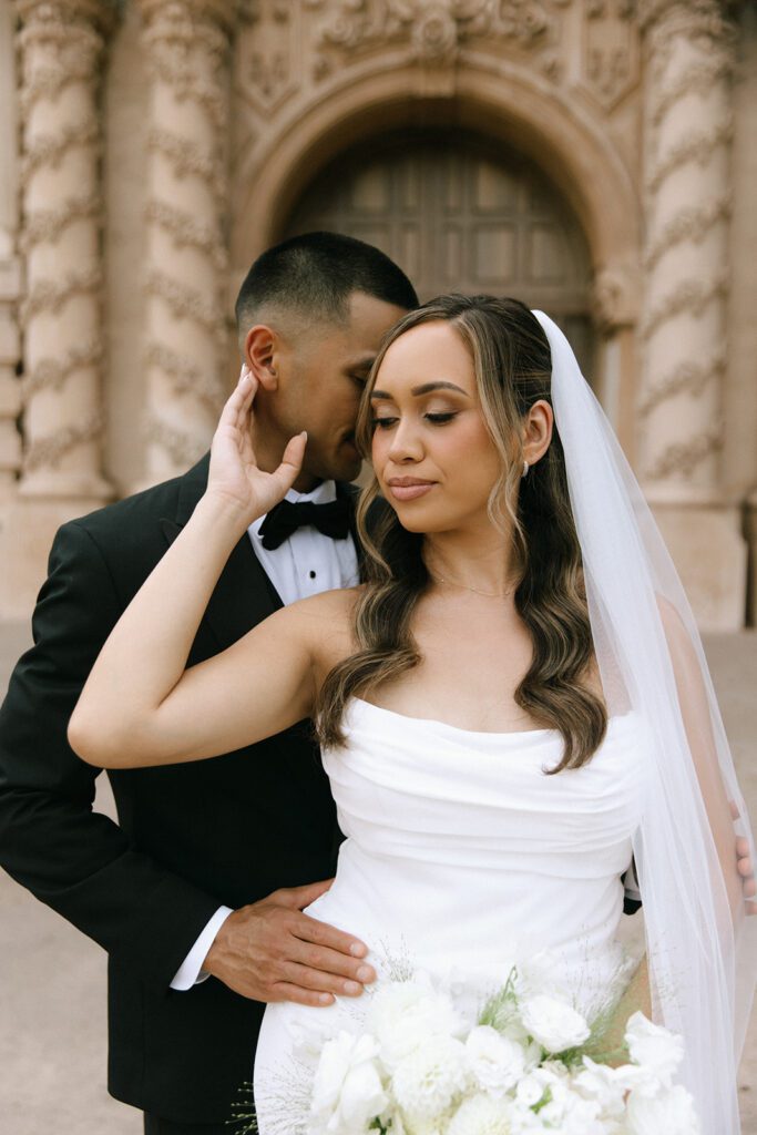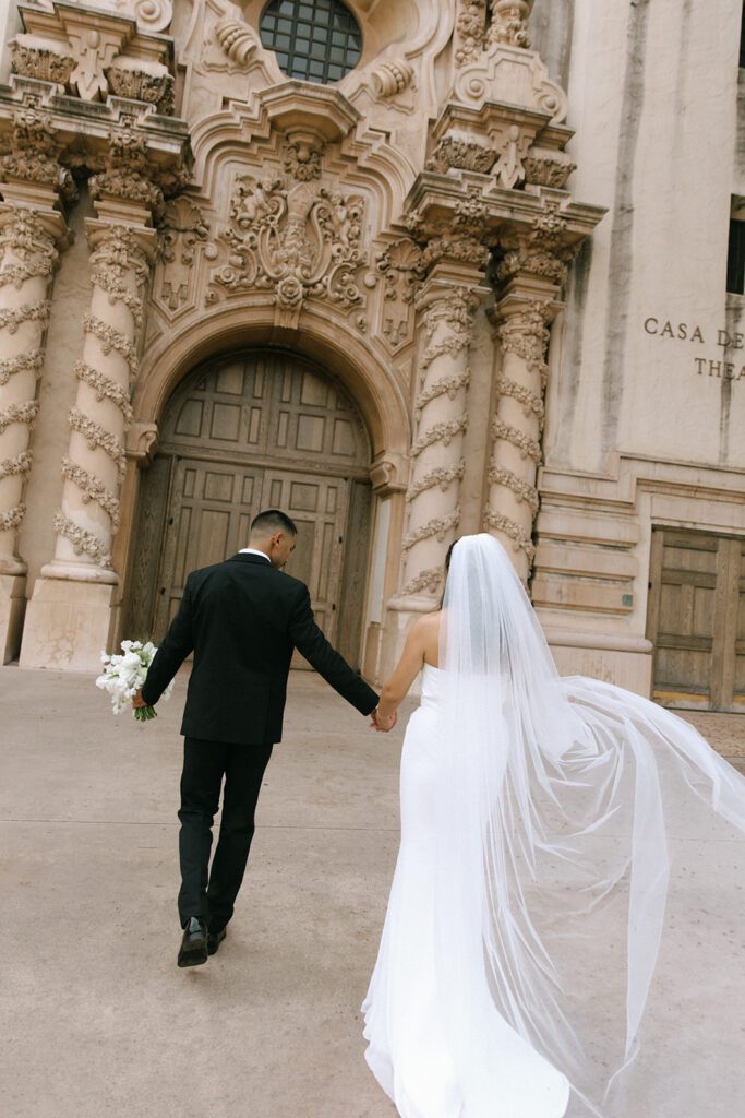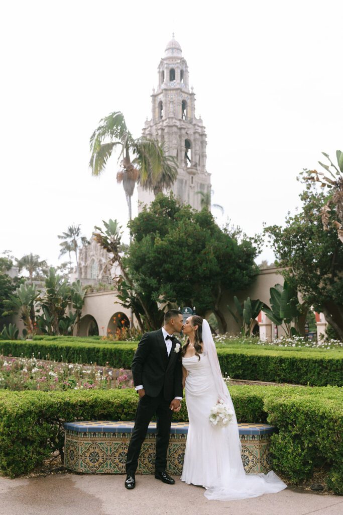 Following the ceremony, we wrapped up the day with bridal portraits at Balboa Park, one of San Diego’s most timeless and versatile photo locations. With its Spanish-style architecture, lush greenery, and tucked-away corners, Balboa Park is an ideal spot for couples who want portraits that feel romantic and editorial without venturing far from downtown. The park offered a beautiful contrast to the moody, rain-soaked beginning of the day at La Valencia and tied everything together with a soft, classic finish. It was the perfect final chapter to Suzette and Axl’s elopement before they joined family for dinner to celebrate.