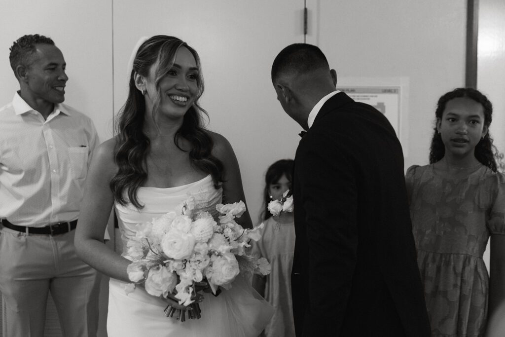 After their time at La Valencia, Suzette and Axl headed to the San Diego Marriage Court to officially tie the knot. By the time we arrived, the rain had cleared right on cue. Surrounded by their immediate family, they exchanged vows in a simple civil ceremony that felt intimate, relaxed, and full of meaning. Courthouse elopements are such an underrated option for couples who want a no-fuss ceremony without sacrificing emotion. The San Diego Marriage Court offers a straightforward, efficient experience while still allowing couples to keep the focus on what truly matters: showing up for one another and celebrating with the people closest to them.